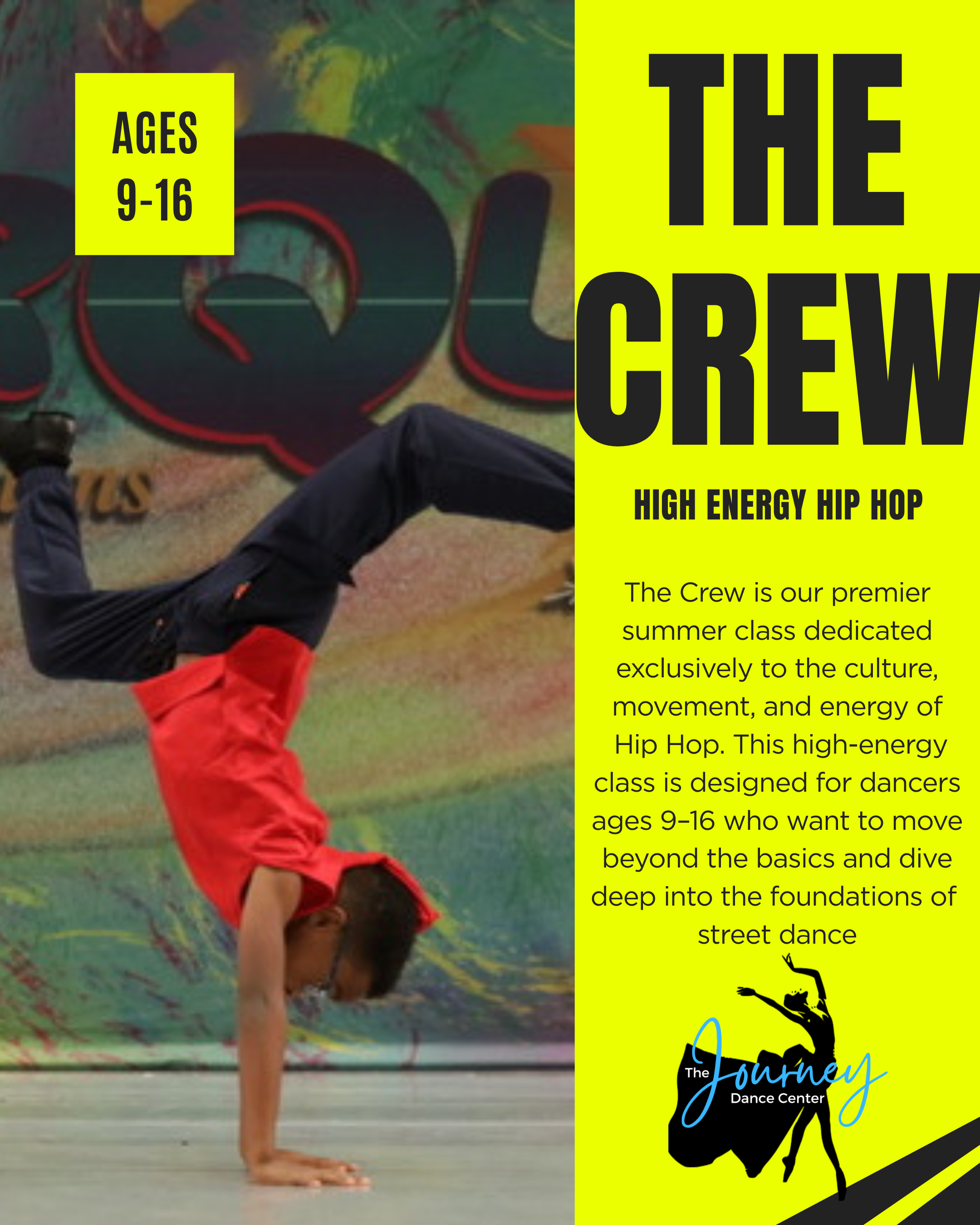 The Crew is our premier summer class dedicated exclusively to the culture, movement, and energy of Hip Hop. This high-energy class is designed for dancers ages 9–16 who want to move beyond the basics and dive deep into the foundations of street dance. In The Crew, we focus on more than just "learning a dance." We dive into the core elements that make a great hip hop dancer: rhythm, isolation, control, and performance quality. Whether you are looking to sharpen your footwork or master the latest trends, this is where you come to build your confidence and find your own unique "swag."